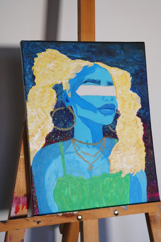 Graduating from McGill in 2023 with a Masters in Sound Recording, Amelya aims to use their art and research to explore intersectionality, focusing on Afrofuturism and historically oppressed communities. Recently, they showcased their premiere multi-media art exhibition, Reflections; a multimedia exploration of self through an Afrofuturist lens. Throughout 2023 she has performed live paintings for Sapphonix Collective's events. In May 2023, Amelya released an album, Eastman, as the lead sound engineer performed by Canadian Composer and Guitarist Emmanuel Jacob Lacopo. This collaboration highlights the composer Julius Eastman through the lens of 21st century guitar. CBC 30 under 30 says, “it needs to be heard to be believed”. She offers original art: a collection of thought-provoking paintings, music, and mixed-media works that explore unique perspectives.